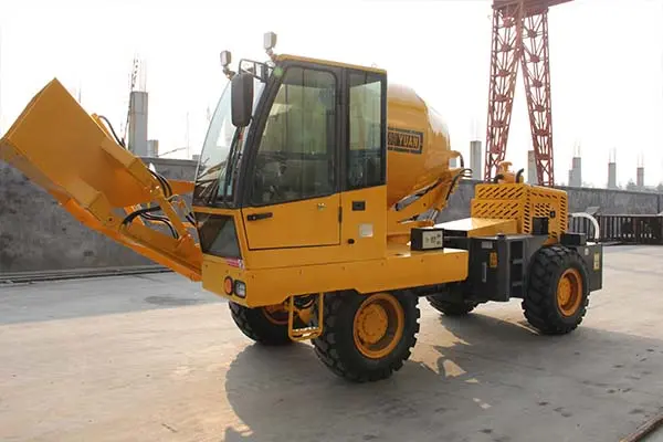 Самозагружающийся бетоносмеситель представляет собой комбинацию автобетоносмесителя и бетономешалки, которые могут автоматически подавать, измерять, смешивать и выгружать бетонную смесь. Оснащенный мощным двигателем и 4-колесным рулевым управлением, самозагружающийся бетономешалка похож на небольшой автомобиль, и оператор может довезти его туда, куда нужно. Это очень удобно для погрузки материала, такого как цемент, заполнитель, камень. Сырье разбрасывают по строительной площадке. С самозагружающейся смесительной машиной вам никогда не придется беспокоиться о транспортировке сырья.