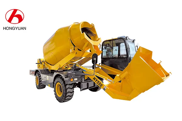 自卸式混凝土搅拌机是混凝土搅拌车和水泥搅拌机的组合,可自动进料、测量、混合和卸料混凝土混合物。自装式混凝土搅拌机配备了强大的发动机和 4 轮转向装置,就像一辆小型汽车,操作员可以将其开到需要去的地方。装载水泥、骨料、石材等物料非常方便。原材料散落在施工现场。使用自装式搅拌机,您将永远不必担心原材料的运输。